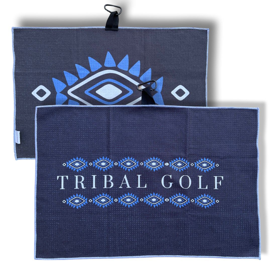 Our Tribal Golf towels don't just look good, they feel great too. This towel is designed to support your golf game whilst making you standout on the course with it's unique design. The microfibre material absorbs more water than a conventional cotton towel, keeping your clubs dryer for longer.